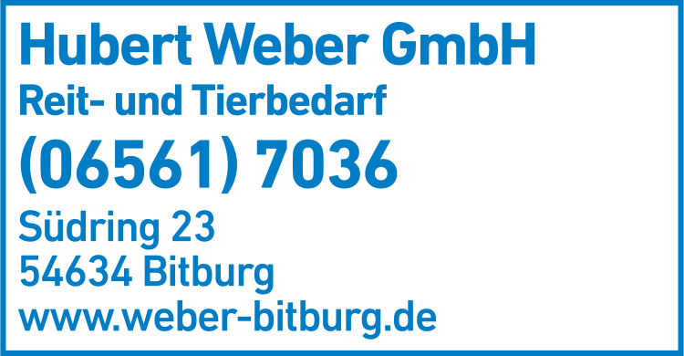 Wenn Sie Hubert Weber GmbH Tierbedarf in Bitburg anrufen möchten, erreichen Sie Ihren Ansprechpartner unter der Telefonnummer 06561 70 36 zu den jeweiligen Öffnungszeiten. Um zu Hubert Weber GmbH Tierbedarf in Bitburg zu gelangen, nutzen Sie am besten die kostenfreien Routen-Services: Diese zeigen Ihnen die Adresse von Hubert Weber GmbH Tierbedarf auf der Karte von Bitburg unter "Kartenansicht" an und erleichtern Ihnen dank des Routenplaners die Anfahrt. Ganz praktisch ist hierbei die Funktion "Bahn/Bus", die Ihnen die beste öffentliche Verbindung zu Hubert Weber GmbH Tierbedarf in Bitburg während der Öffnungszeiten anzeigt. Sie sind häufiger dort? Dann speichern Sie sich doch die Adresse gleich als VCF-Datei für Ihr digitales Adressbuch oder versenden Sie die Kontaktdaten an Bekannte, wenn Sie Hubert Weber GmbH Tierbedarf weiterempfehlen möchten.
