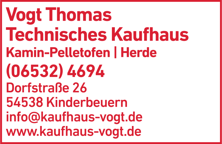 Wenn Sie Vogt Thomas Technisches Kaufhaus in Kinderbeuern anrufen möchten, erreichen Sie Ihren Ansprechpartner unter der Telefonnummer 06532 46 94 zu den jeweiligen Öffnungszeiten. Um zu Vogt Thomas Technisches Kaufhaus in Kinderbeuern zu gelangen, nutzen Sie am besten die kostenfreien Routen-Services: Diese zeigen Ihnen die Adresse von Vogt Thomas Technisches Kaufhaus auf der Karte von Kinderbeuern unter "Kartenansicht" an und erleichtern Ihnen dank des Routenplaners die Anfahrt. Ganz praktisch ist hierbei die Funktion "Bahn/Bus", die Ihnen die beste öffentliche Verbindung zu Vogt Thomas Technisches Kaufhaus in Kinderbeuern während der Öffnungszeiten anzeigt. Sie sind häufiger dort? Dann speichern Sie sich doch die Adresse gleich als VCF-Datei für Ihr digitales Adressbuch oder versenden Sie die Kontaktdaten an Bekannte, wenn Sie Vogt Thomas Technisches Kaufhaus weiterempfehlen möchten.