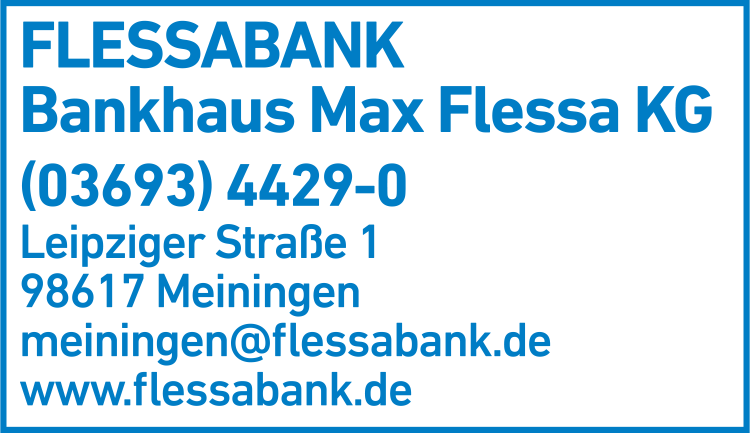 Wenn Sie Bankhaus Max Flessa KG in Meiningen anrufen möchten, erreichen Sie Ihren Ansprechpartner unter der Telefonnummer 03693 44 29-0 zu den jeweiligen Öffnungszeiten. Um zu Bankhaus Max Flessa KG in Meiningen zu gelangen, nutzen Sie am besten die kostenfreien Routen-Services: Diese zeigen Ihnen die Adresse von Bankhaus Max Flessa KG auf der Karte von Meiningen unter "Kartenansicht" an und erleichtern Ihnen dank des Routenplaners die Anfahrt. Ganz praktisch ist hierbei die Funktion "Bahn/Bus", die Ihnen die beste öffentliche Verbindung zu Bankhaus Max Flessa KG in Meiningen während der Öffnungszeiten anzeigt. Sie sind häufiger dort? Dann speichern Sie sich doch die Adresse gleich als VCF-Datei für Ihr digitales Adressbuch oder versenden Sie die Kontaktdaten an Bekannte, wenn Sie Bankhaus Max Flessa KG weiterempfehlen möchten.