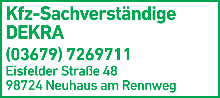 Wenn Sie DEKRA Kfz-Sachverständige in Neuhaus am Rennweg anrufen möchten, erreichen Sie Ihren Ansprechpartner unter der Telefonnummer 03679 7 26 97 11 zu den jeweiligen Öffnungszeiten. Um zu DEKRA Kfz-Sachverständige in Neuhaus am Rennweg zu gelangen, nutzen Sie am besten die kostenfreien Routen-Services: Diese zeigen Ihnen die Adresse von DEKRA Kfz-Sachverständige auf der Karte von Neuhaus am Rennweg unter "Kartenansicht" an und erleichtern Ihnen dank des Routenplaners die Anfahrt. Ganz praktisch ist hierbei die Funktion "Bahn/Bus", die Ihnen die beste öffentliche Verbindung zu DEKRA Kfz-Sachverständige in Neuhaus am Rennweg während der Öffnungszeiten anzeigt. Sie sind häufiger dort? Dann speichern Sie sich doch die Adresse gleich als VCF-Datei für Ihr digitales Adressbuch oder versenden Sie die Kontaktdaten an Bekannte, wenn Sie DEKRA Kfz-Sachverständige weiterempfehlen möchten.