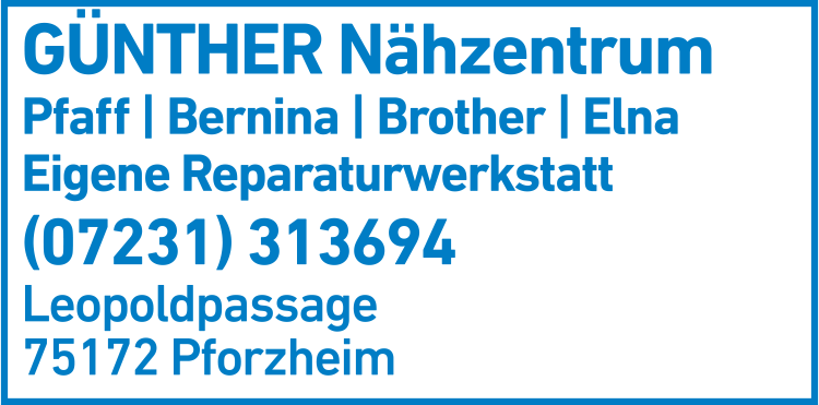 Sie sind auf der Suche nach Günther Nähzentrum GmbH in Pforzheim? Das Telefonbuch hilft weiter: Dort finden Sie Angaben wie die Adresse und die Öffnungszeiten. Um zu Günther Nähzentrum GmbH zu kommen, können Sie einfach den praktischen Routenplaner nutzen: Er zeigt Ihnen nicht nur die schnellste Anfahrtsstrecke, sondern mit der Funktion "Bahn/Bus" können Sie sich die beste Verbindung mit den öffentlichen Verkehrsmitteln zu Günther Nähzentrum GmbH in Pforzheim anzeigen lassen. Schauen Sie am besten gleich nach Verbindungen innerhalb der Öffnungszeiten. Übrigens: Sie können die Adresse auch als VCF-Datei für Ihr digitales Adressbuch speichern, so dass Sie diese gleich parat haben für Ihren nächsten Besuch bei Günther Nähzentrum GmbH in Pforzheim. Und Sie können diese sogar per Mail oder SMS an Ihre Freunde oder Ihre Bekannten versenden, wenn Sie Günther Nähzentrum GmbH weiterempfehlen möchten.